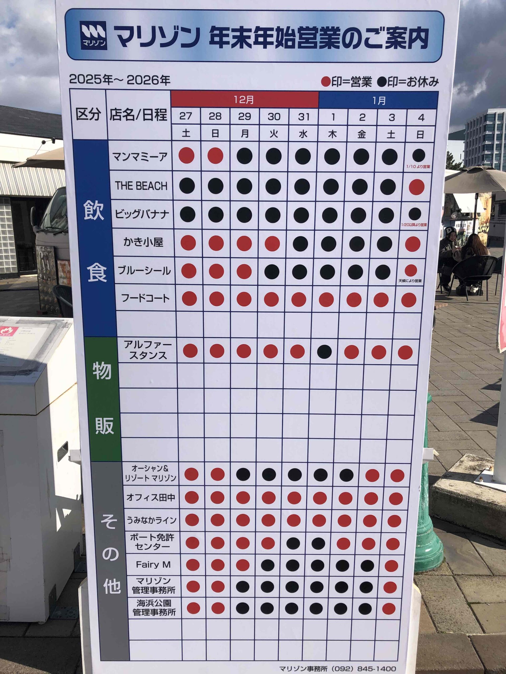 マリゾンでは年末年始12月29日~1月3日までお休みをいただきます。